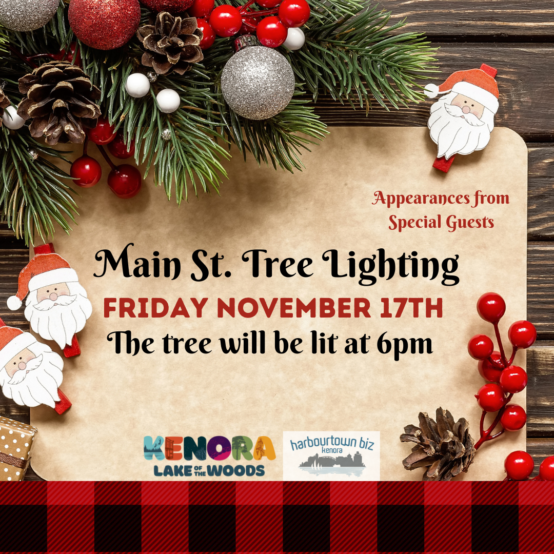 On Friday, November 17th join Tourism Kenora and Harbourtown Biz from 5:30 p.m. to 6:30 p.m. as they present the 92nd Annual Main Street Tree Lighting in downtown Kenora.